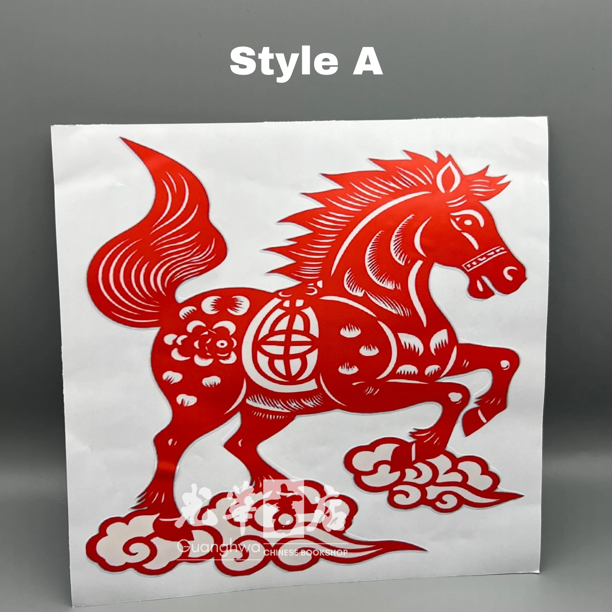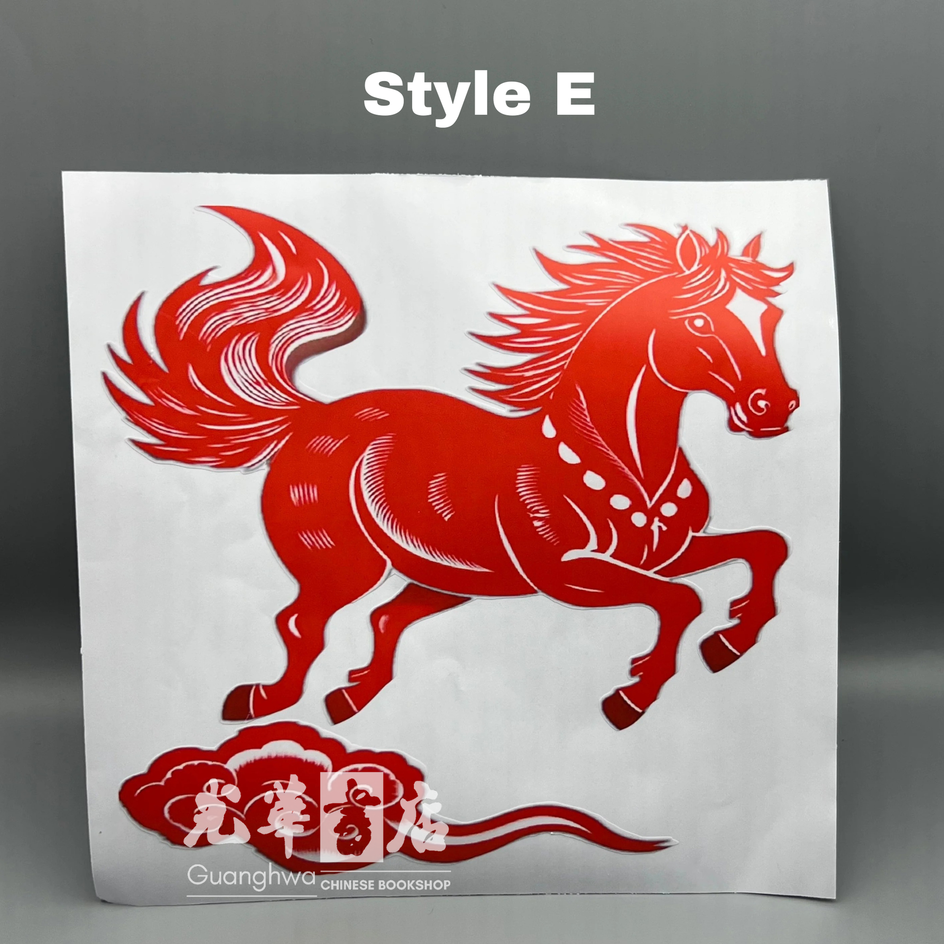 The horse symbolizes strength, progress, and good fortune. This Year of the Horse sticker is perfect for New Year decoration and can be applied to doors, windows, walls, glass, and other smooth surfaces.